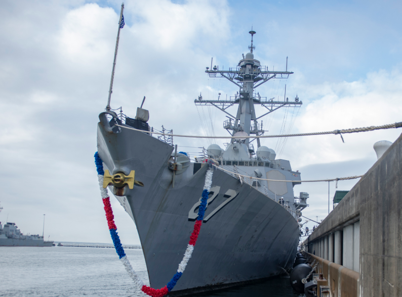 Применение вооружения В ходе миссии эсминец осуществил пуск управляемой ракеты SM-2 из своей универсальной пусковой установки Mk 41 по воздушной цели. Также было выполнено применение малогабаритной управляемой ракеты (MALR) по надводной цели с использованием дистанционно управляемого модуля CROWS, установленного на палубе. Кроме того, корабль провел учебные стрельбы из 127-мм артиллерийской установки Mk 45 и малокалиберных автоматических систем.