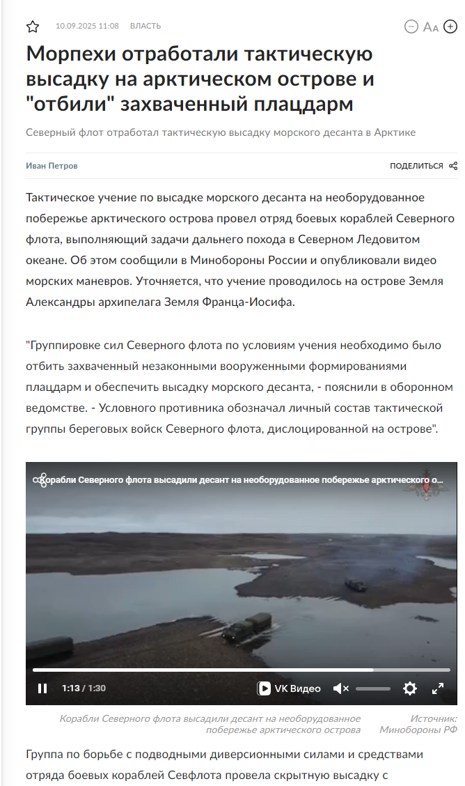 Rg.ru: Морпехи отработали тактическую высадку на арктическом острове и "отбили" захваченный плацдарм